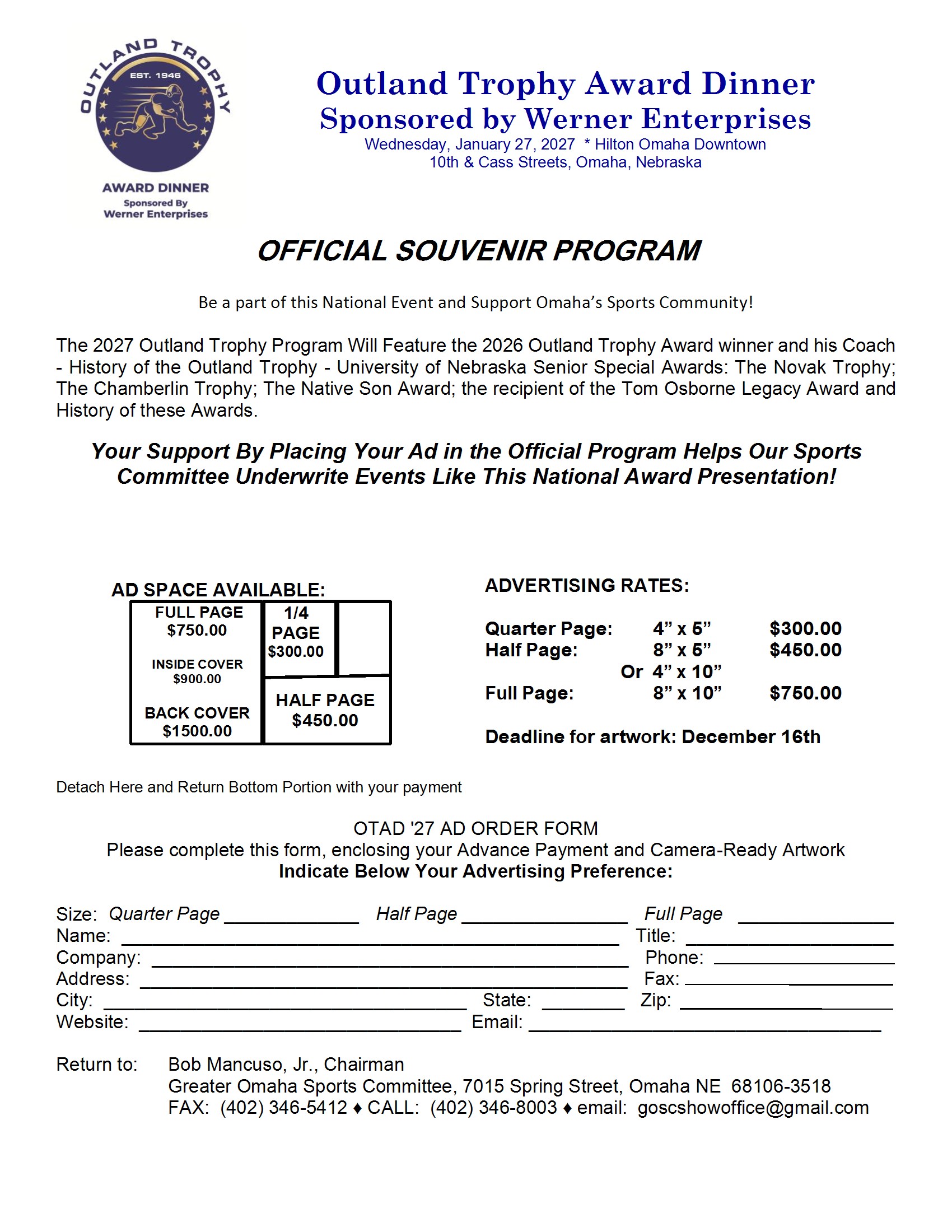 January 27, 2027 at the Hilton Omaha Downtown – 1001 Cass St